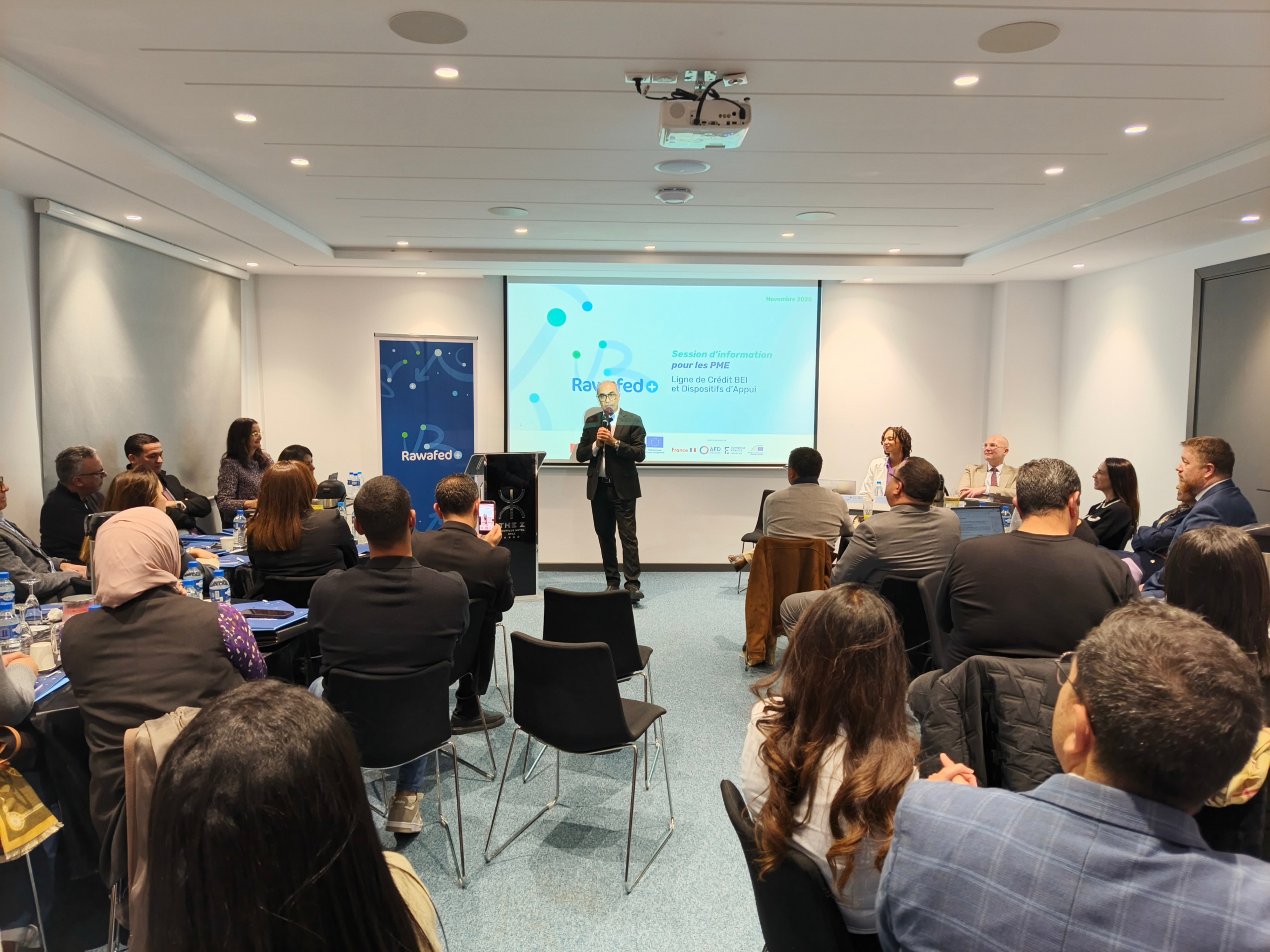 Lancée la semaine du 25 novembre, la caravane Rawafed+ × BEI a entamé son parcours à Sfax par une session dédiée aux institutions financières concernées, suivie, l’après-midi, de rencontres avec les PME de Sfax et des régions avoisinantes. Ces échanges ont permis aux entreprises de prendre connaissance des deux dispositifs de financement complémentaires et d’interagir directement avec les experts de la BEI ainsi qu’avec l’équipe du projet Rawafed+.